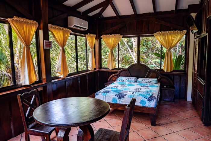 Tucancillo es un hermoso estudio ubicado en la parte alta de la propiedad. La mayor parte del lugar fue construido con finos acabados en madera, que hacen que el lugar sea hermoso. Su ubicación lo hace privilegiado ya que es un lugar muy privado y tranquilo. Cuenta con amplios ventanales en el 80% del sitio dando la oportunidad de observar una gran variedad de aves que visitan el lugar, así como otras especies como monos aulladores, monos cara blanca, agutíes, coatíes, mapaches, loros verdes, pericos y una gran cantidad de mariposas. Tucancillo es para tres personas, cuenta con una cama matrimonial, aire acondicionado, ventilador de techo, sofá cama, sala comedor, baño privado, amplia cocina totalmente equipada, gabinetes para ropa, televisión, piscina compartida y estacionamiento. Además cuenta con un rancho en la planta baja donde hay un lavadero, mesa con bancos y una hamaca.